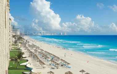 En allant au Mexique, une autre option alliant patrimoine et farniente est la visite du site de Tulum. Elle constitue l’unique ville héritée de la civilisation maya sur la côte caribéenne, le long de la Riviera Maya. Sa popularité est fortement liée à son décor enchanteur. D’authentiques vestiges de la civilisation maya sont perchés sur un promontoire rocheux émergeant d’un décor de carte postale. Ils plongent dans un sable lisse et blanc, des eaux cristallines turquoise et une réserve marine protégée. Ancien port de commerce, c’est l’une des seules villes fortifiées mayas.